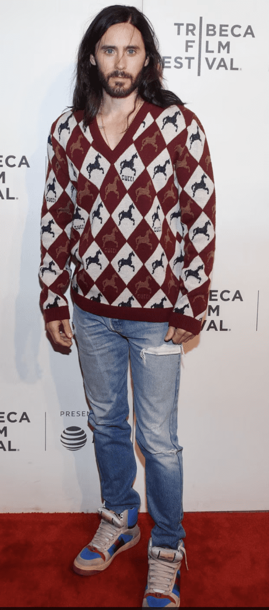 Джаред Лето, известный своими экспериментальными образами, на фото в рваных джинсах скинни