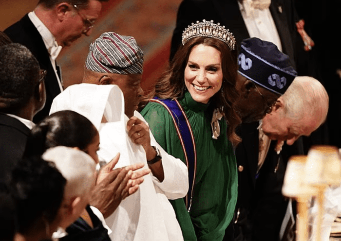 Принцесса Уэльская сияла от радости, поднимая бокал за президента Нигерии на государственном банкете, устроенном королем Карлом.