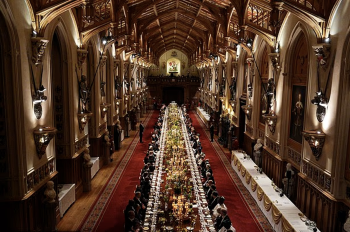 В зале Святого Георгия царила великолепная атмосфера, пока 160 гостей наслаждались трапезой