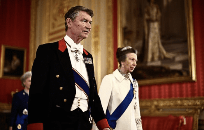 Вице-адмирал Тимоти Лоуренс и принцесса Анна, принцесса-консорт, прибывают на банкет