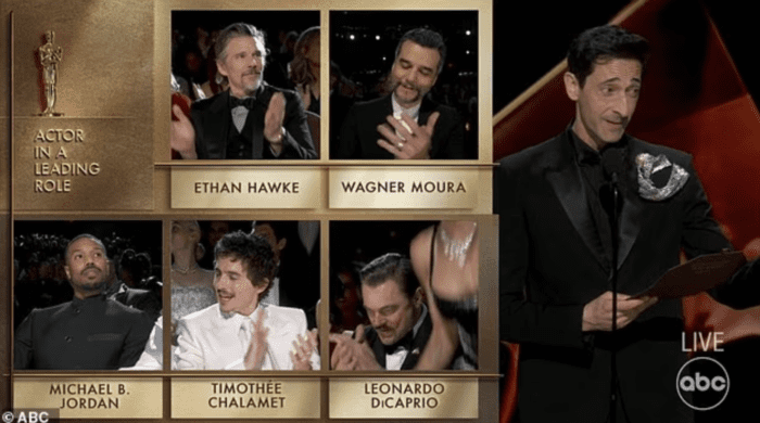 После того как обладатель премии «Оскар» за лучшую мужскую роль 2025 года Эдриан Броуди зачитал имя Джордана, Тимоти Шаламе вежливо зааплодировал и неловко улыбнулся.