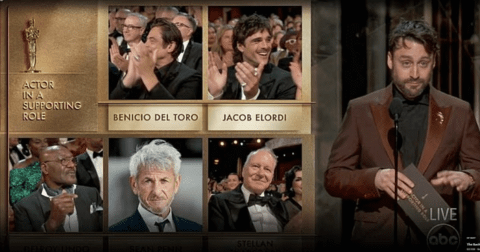 Имя 65-летнего актера, получившего премию «Оскар», было названо Киераном Калкиным в номинации «Лучшая мужская роль второго плана» за работу в фильме «Одна битва за другой», но его не было на церемонии награждения.