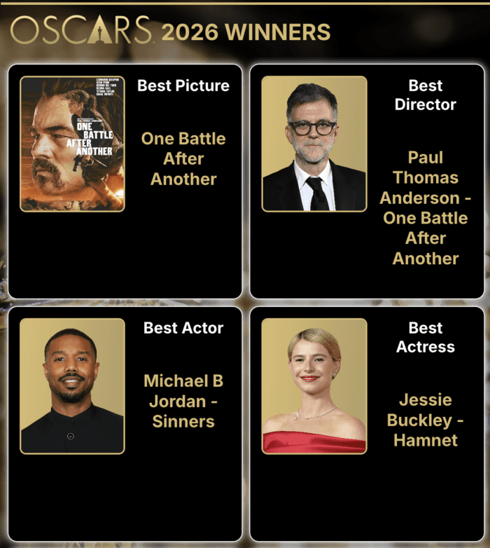 Кассандра Кулукундис получила первую в истории премию «Оскар» за лучший актёрский состав за работу в фильме «Одна битва за другой»