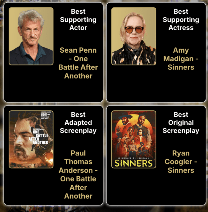 «Я буду продолжать совершенствоваться и становиться лучшей версией себя», — сказал Джордан. Фильм «Грешники» также получил награду за лучший сценарий режиссера Райана Куглера.
